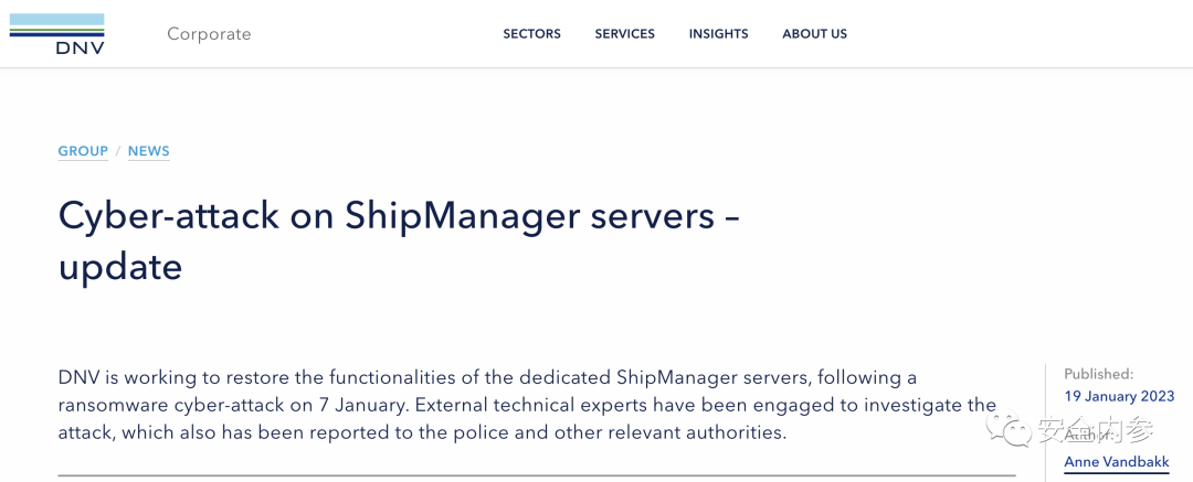 由于遭遇勒索软件攻击,DNV旗下船舶船队管理软件ShipManager的在线服务器被迫关闭;
