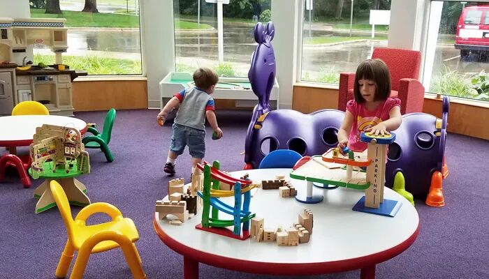 公共图书馆都会有小朋友玩的地方。除了会提供画画和做手工的材料,还会有一些玩具,譬如模拟厨房,乐高,木马等等。夏天户外太热,不如带孩子去图书馆玩。