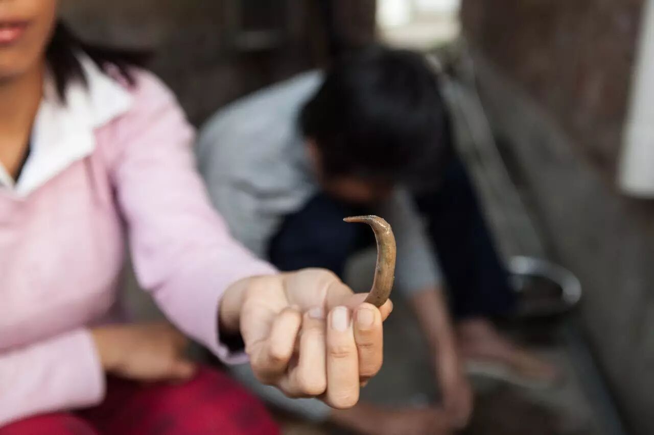 星虫腹内主要的器官就是一条消化用的肠道,与吻部尖端的口和肛相通,所以手法娴熟的人可以在掐掉虫吻的时候掌握好力度,完整地拉出肠道,最大程度避免残留。掏空了腹腔的虫肉只剩下一层小小的肉质皮囊。丢弃物则很多,一天下来,泥沙与污物会堆满小院,让人无处下脚。