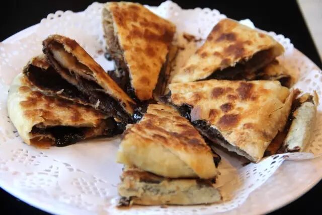 除了羊肉,他家的麻酱烧饼也非常不错,浓郁的糖汁几乎要流淌出来,用嘴都包不住