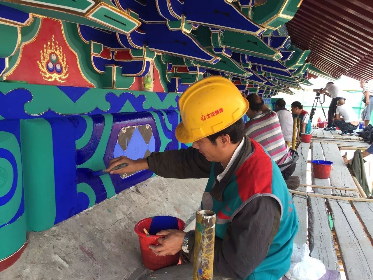 ▲ 近日王光宾参与彩绘的北京香山东门牌坊。