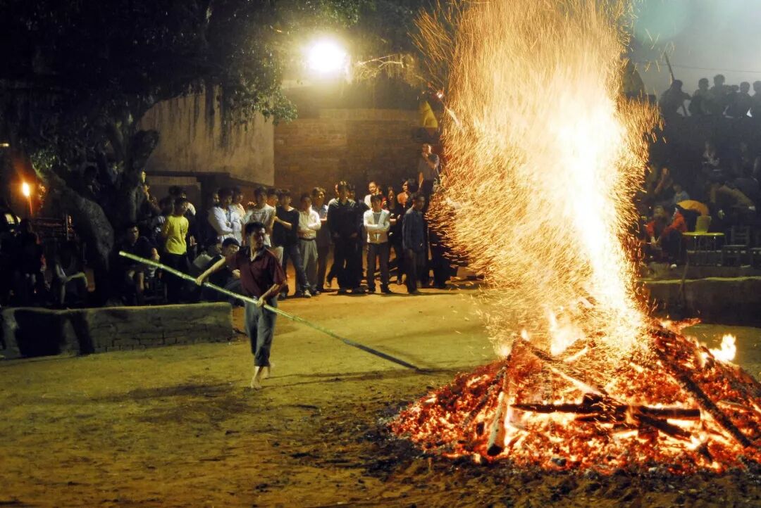 人们围在火场外围,等时辰到时,会有一个头裹红斤身披红袍的汉子冲入人群,从炭火中拔出一柄犁头,用牙咬住犁尖,绕场三圈,再跑去不远处的神庙里,将其摆在神像前。这是为了祭祀神灵,祈盼来年风调雨顺、五谷丰登。