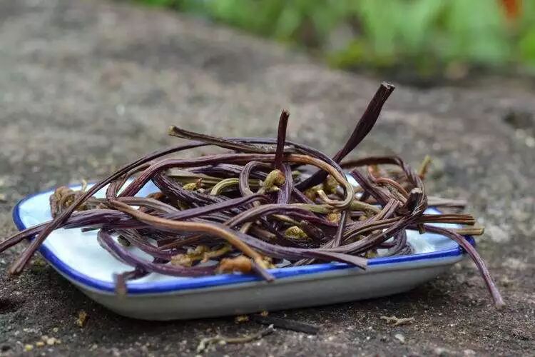 每家拌蕨菜的方法不同,有的爱加辣椒面,有的爱加蒜泥。宋人车瑾在诗中曾说“胡麻调紫蕨,黄独煮香粳”,想来,要用芝麻油拌蕨菜应该也是香气浓郁,无比诱人呐。