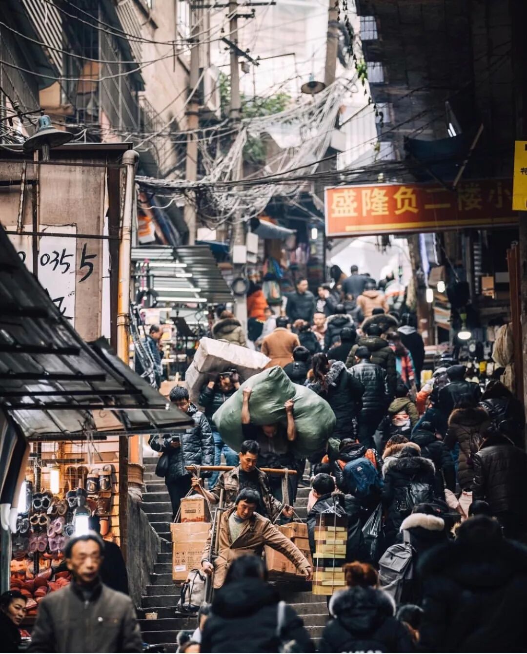 如今,这种传统的民居渐渐褪进了老重庆人的记忆里。依山而建的城市成了今天错落有致的现代高楼、穿墙过洞的都市轻轨以及都市灯光阴影之下,那一条条弯曲陡峭的小巷…………