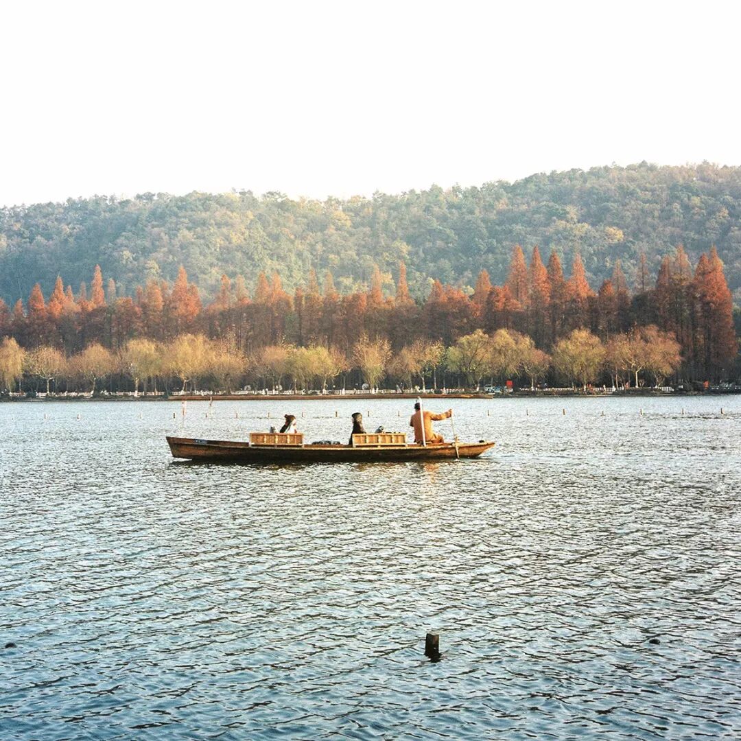 ▲十二月,花港观鱼。西湖变成透明的深蓝,在花港观鱼,隔岸眺望秋色浸染的南山路,真像一幅沉静的水彩画。虽然没有西北的壮阔天地,但杭州无数隐匿的小景致,在四季的变幻中散发着江南耐人寻味的美。