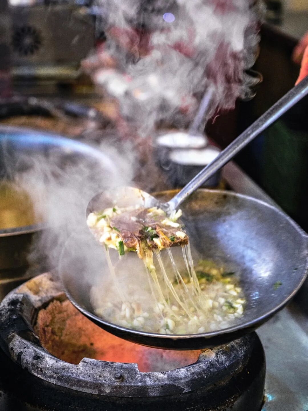 夹菜、夹鸡蛋、夹豆腐干……夹得不亦乐乎,最具代表性当然还是油泼辣子夹馍。“没有辣子嘟嘟囔囔”,老陕的幸福感在一大早便油然而生。