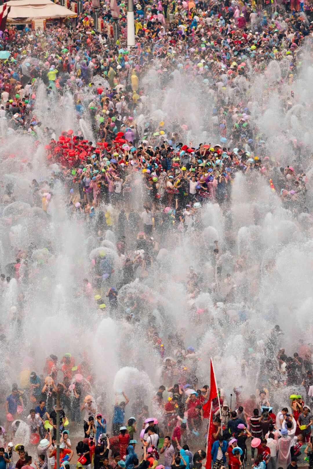 尤其是在西双版纳州府景洪,每逢泼水节就是万人空巷,大家都聚集在广场上,用铜钵、脸盆甚至水桶在广场上互泼,近些年甚至出现了水枪、抽水泵等新型武器,为传统节庆气氛增添了一抹科技感。
