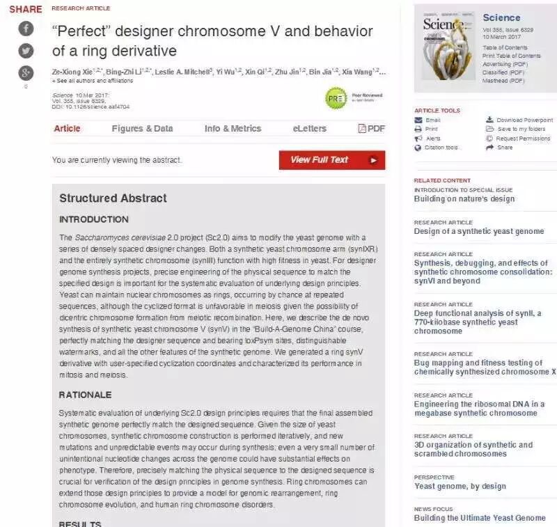 3月10日,天大化工学院元英进科研团队在合成生物学领域取得重大突破,完成的“真核生物酵母长染色体化学再造”项目2篇学术论文以封面的形式在国际顶级学术期刊《科学》上发表。12月,该研究获评2017年中国高校十大科技进展、2017国内十大科技新闻,相关成果被自然指数(Nature Index)列为研究亮点进行了专门报道。