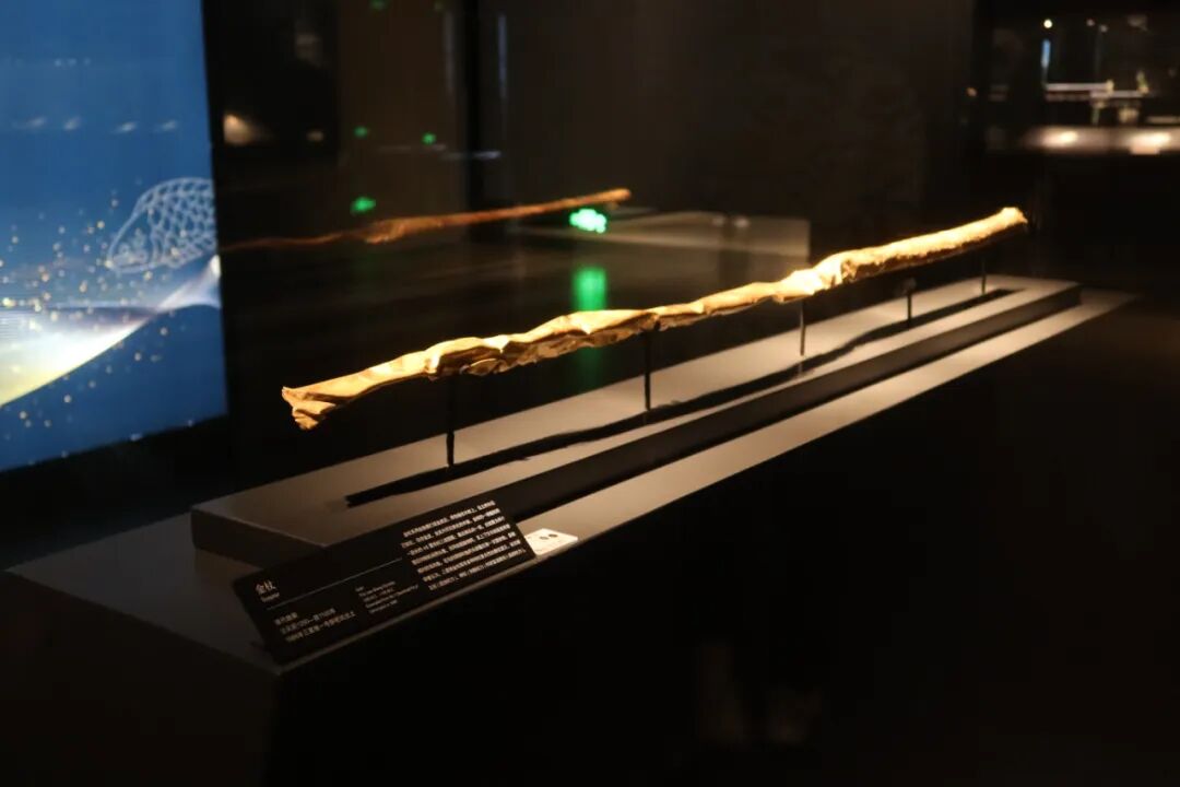三星堆祭祀坑出土的金杖是已出土的中国同时期金器中体量最大的一件。金杖系用金条捶打成金皮后,再包卷在木杖上;出土时木杖已炭化,仅存金皮。