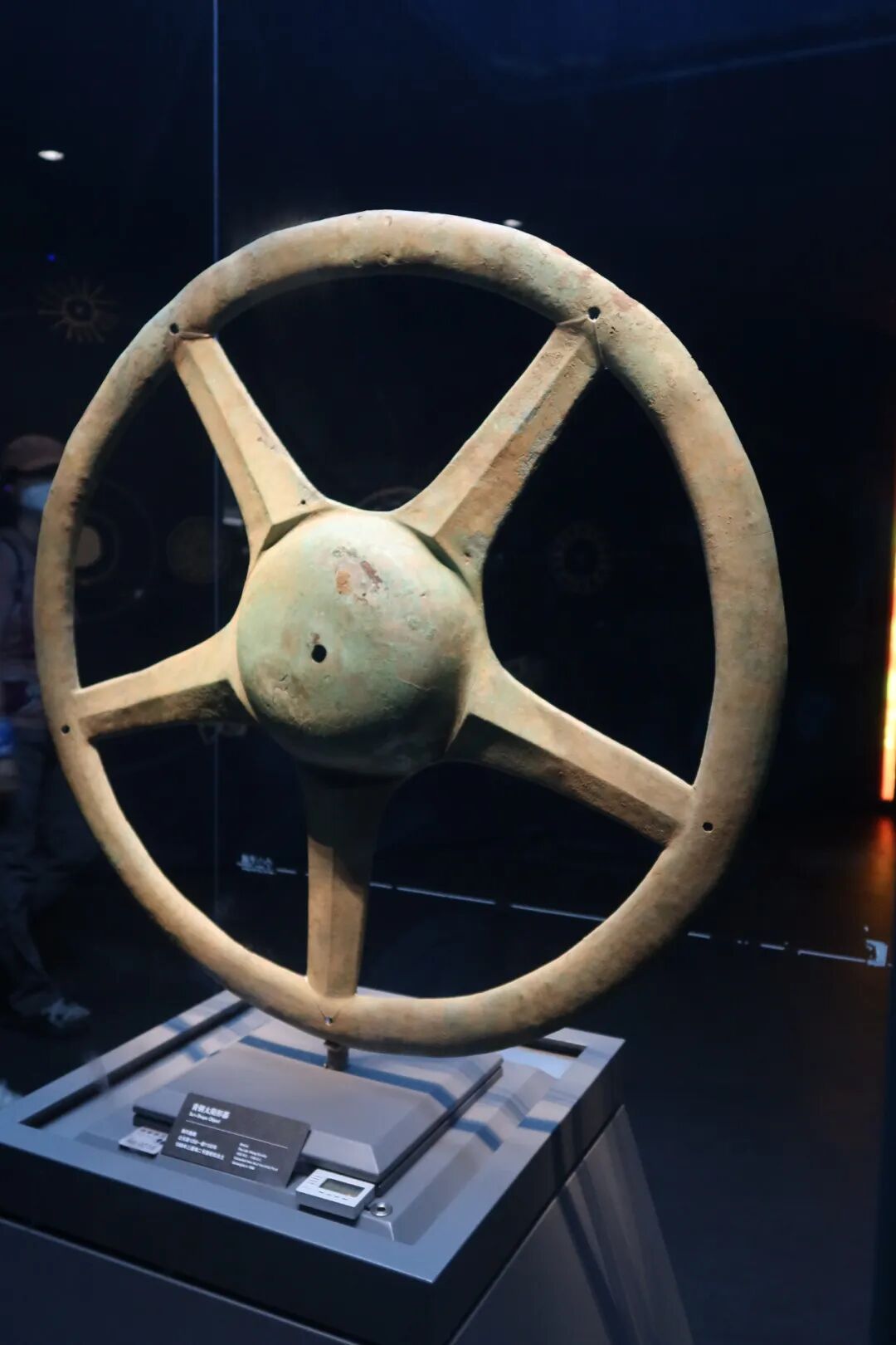 在三星堆博物馆青铜馆可以看到一件形似方向盘的文物——青铜太阳轮形器,这也是古蜀人对太阳崇拜的实物化。出土时,它与其兄弟姐妹共有6件。