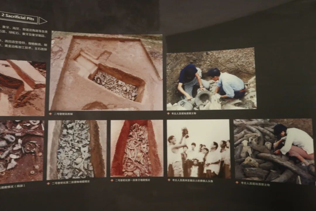 在青铜馆顶层,还有关于三星堆考古现场的资料展示,很多人走马观花会错过这里。建议大家可以留步看看,正是有了这些付出了努力和心血的考古工作者们,我们才能有机会领略到这个庞大古蜀帝国的风采。