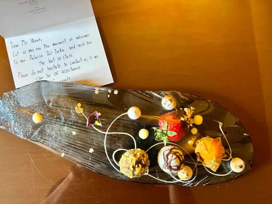 Reception:入住时候Reception主动为我免去了Resort Fee,因为里面的很多权益和万豪钛金白金一致。这期间每次我主动叫车都是提前说一声,走到门口车就已经在等候我了。我启程去马丘比丘那天,前台看到我高原反应迟迟不退,于是主动跑去早餐厅给我装了一杯马黛茶带在路上喝,这种举动真的十分暖心。
