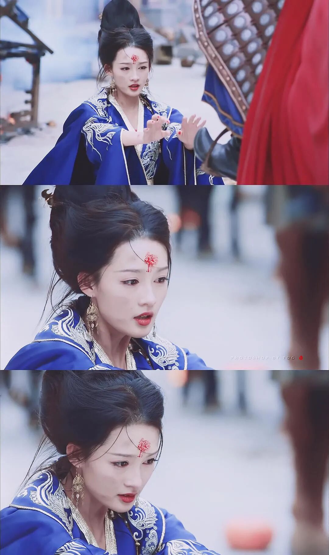 还有《蜀山战纪》的玉无心,不得不说蓝色造型真的好美,头上的坠饰和耳饰也很精致,就是当时的这个眉毛画得实在是有点出戏,又粗又实。