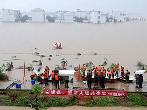 湖北省紧急调动了2000名军警,空投了一万件救生衣。