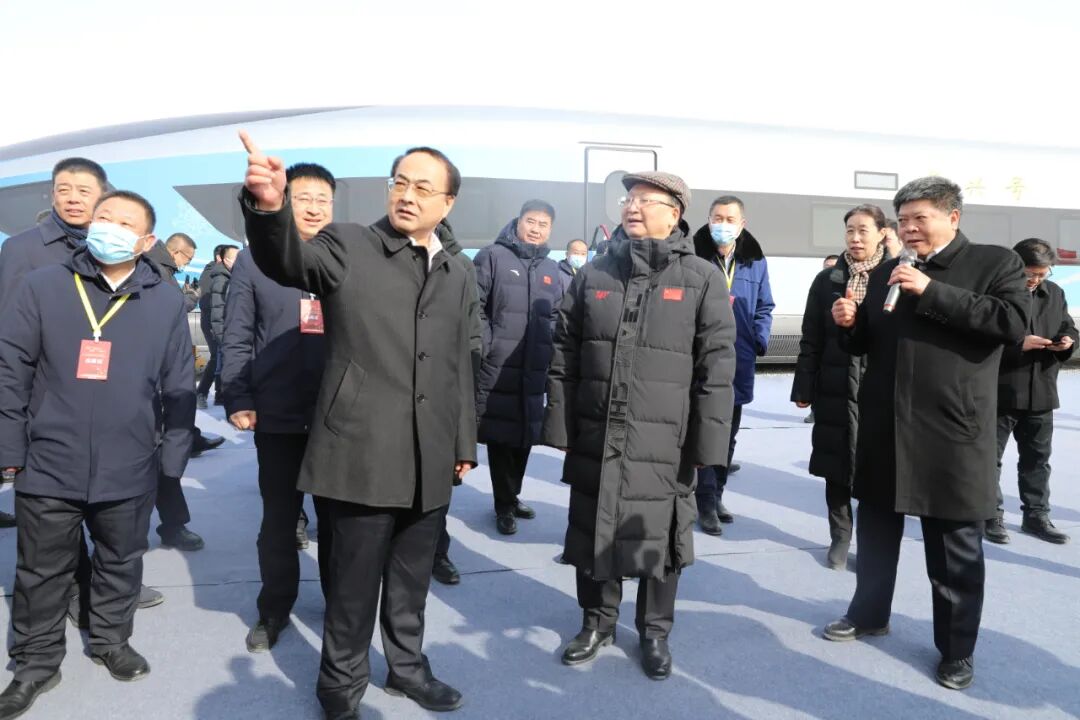 △王锋为与会领导嘉宾讲解“瑞雪迎春”复兴号动车组
