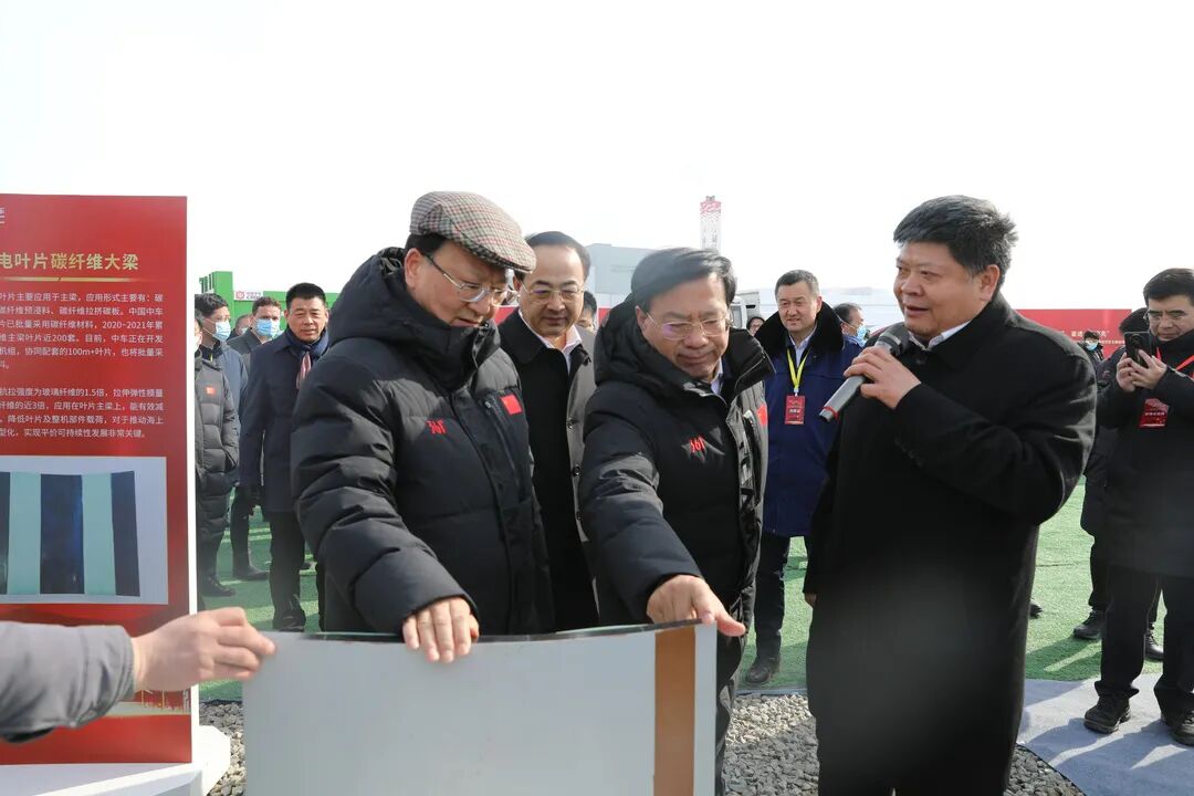 松原市常务副市长刘铁铎详细介绍了松原市“六新产业”发展情况。余卫平全面介绍了风电整机、碳纤维叶片、电机、储能装备、钢构塔筒等风电全产业链装备和新能源车辆装备。参观领导高度评价中车新能源基地的建设与助力区域经济发展的广阔前景,高度赞扬中国中车依托百年央企底蕴、争当风电领域全产业链链长的雄厚实力。