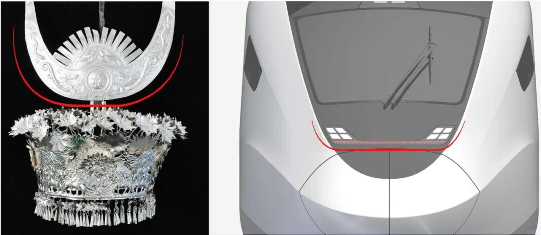 车灯以贵阳少数民族大银角头饰造型为灵感,银光闪烁,皎洁如星,赋予列车民俗文化特色。