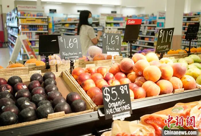 2022年9月13日,顾客在美国加州圣马特奥一家超市购物。中新社记者 刘关关 摄
