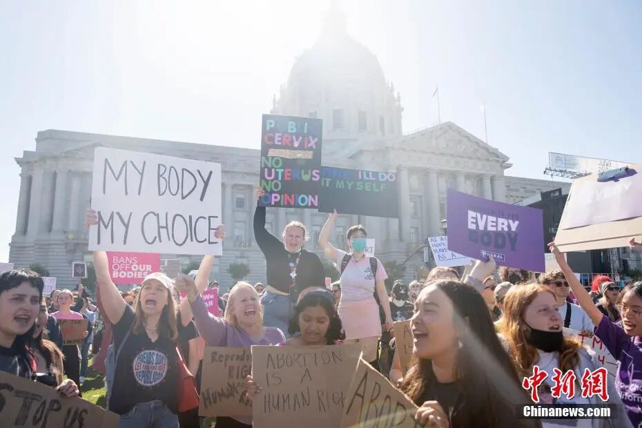 2022年6月24日,美联邦最高法院推翻罗诉韦德案,旧金山民众集会抗议 。中新社记者 刘关关 摄