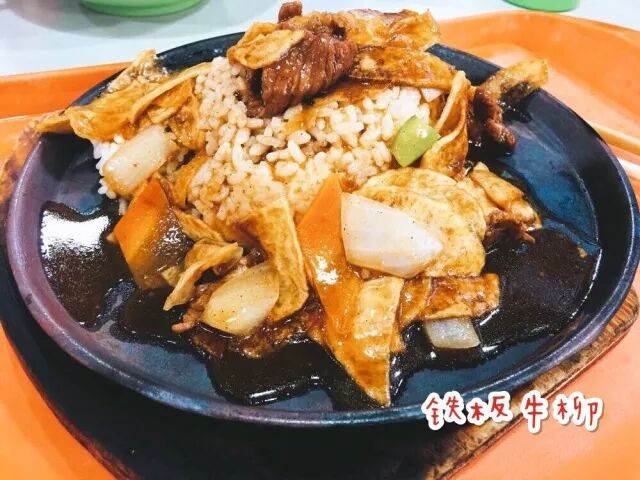 牛肉和土豆片在铁板上被烤得滋滋作响,香嫩的牛肉遇上薄韧的土豆片,碰撞出的是舌尖最喜欢的味道。菜量适中,对于女生而言较为合适。饭量稍大的男孩子也不用担心吃不饱,窗口可以免费添饭哦。