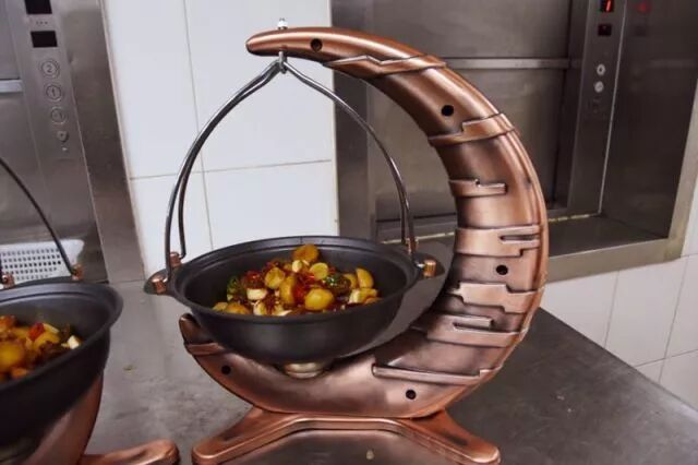 新疆草原小土鸡肉质鲜美,配上酥烂小土豆,在半月形装饰的吊锅中,既让人有视觉的满足,又有味觉的丰富。仿佛与当地人一起在炭火旁把茶言欢,在浓浓的香气中吃的大汗淋漓,心情舒畅。