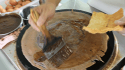 轻掀煎饼慢翻个,乱撒葱丝细品香