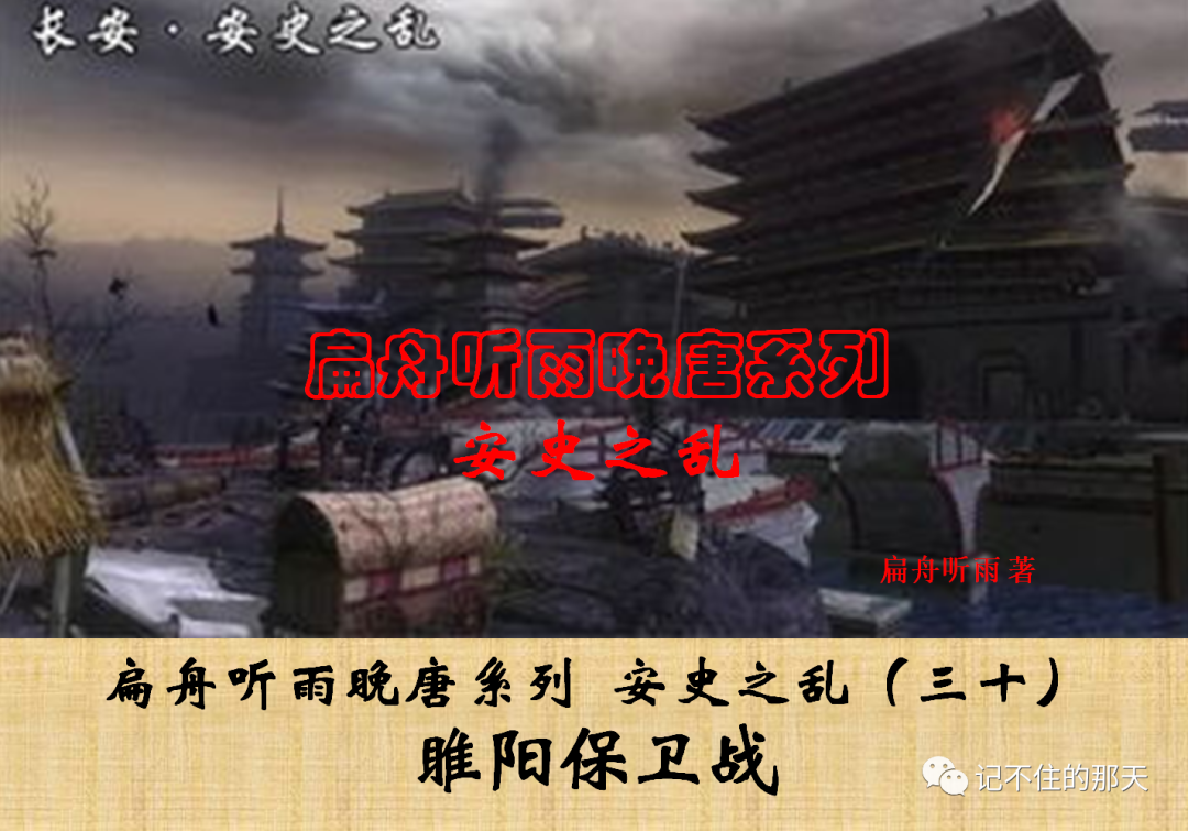 实际上的雍丘之战,大约就是张巡带了不到两千民兵守在雍丘,令狐潮带两千来人来打,三番五次打不动,后来燕帝国正面战场取得很大进展,打进了长安城,所以决定对侧后游击战场也作为一个重点工程来抓一下,于是又派李廷望和杨朝宗带了两三千人来支援,来的人多了,唐军就挡不住了,于是张巡放弃雍丘,先撤退到了宁陵、后改驻防睢阳。