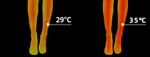 不信你看在热成像仪上,模特一上身,10分钟后,腿部温度就上升了6°!