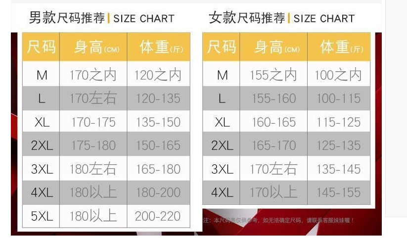 尺码上男女也有不同:男生最大体重能穿到220斤,女生最大则是155斤。