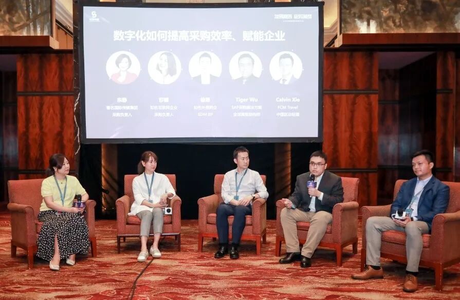5位演讲嘉宾分享了《差旅采购赋能企业》、《为效率做加法,为成本做减法》、《合规、效率与降本间的平衡》、《采购vs财务:一对相爱相杀的欢喜冤家》、《新环境下人力资源外包品类发展趋势及供应商管理要点》的主题。