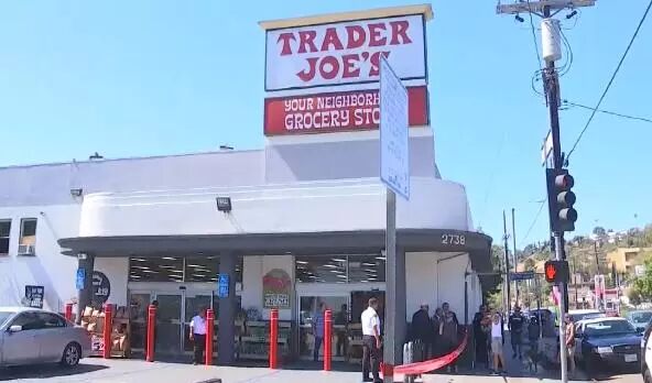 洛市警居24日公布的第一段现场录影显示,兇嫌汽车撞到Trader Joe's 门前的防撞柱,发出巨大声响。兇嫌从车中出来,冲进Trader Joe's。此时店中正好出来一人。