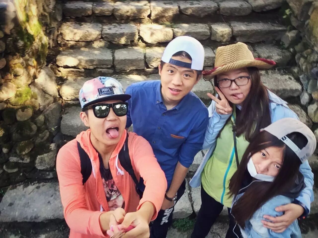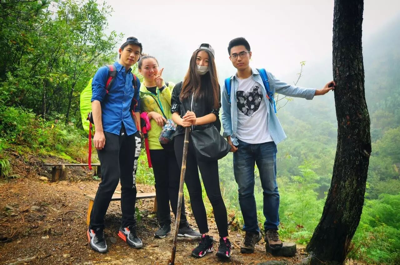 其实来之前一直在纠结天气,因为天气预报一直是小雨。不过事实证明这点雨还真不算什么,下了不到一个小时就停了,这种凉爽的天气比大太阳更适合徒步。四个人唱了一路,从周杰伦到王力宏,从“哎~大山的子孙~呦!”唱到“土鸡到土鸡蛋,强强已cei呛”一路欢歌笑语,很庆幸没有因为阴雨而退出。放几张合影哈哈,某人说我们几个大长腿拉高了队伍的整体水平哈哈哈!
