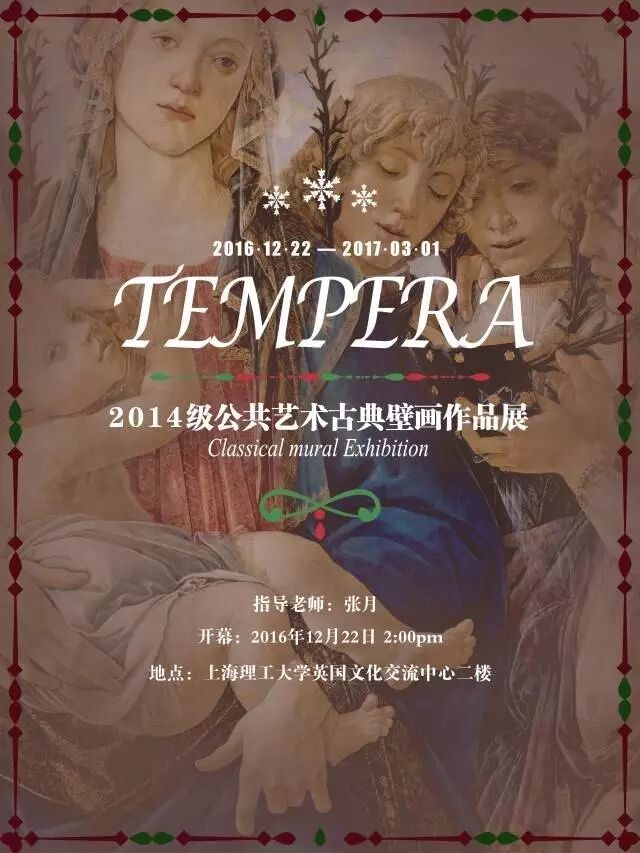 此次展览选址在上海理工大学校内英国交流中心的小洋房里,迎合西方的圣诞节将西方经典的圣经故事宗教文化故事展示出来,另一方面也是在致敬坦培拉这一技法以及各位艺术大师。