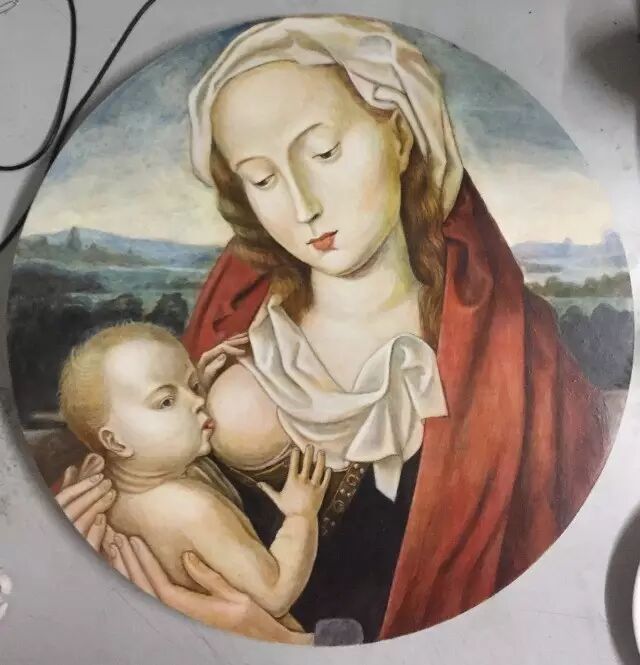 坦培拉颜料是用蛋黄、水和矿物质颜料等合成的,由于蛋黄的稳定性和胶质质感,坦培拉绘画长时间保持如初的色泽,光鲜靓丽;加之反复上色过程,耗时长久,每一笔都必须如修道者一般从容。