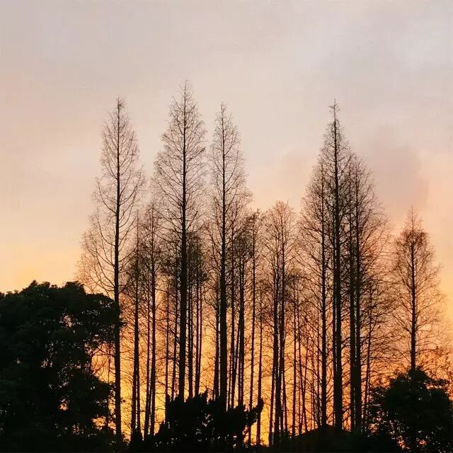 水杉和夕阳