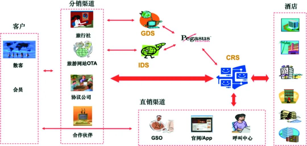 过去二十多年,中国酒店业的营销体系发生了深刻的技术变革。一方面,各酒店集团构建了中央预订系统CRS、酒店管理系统PMS、收益管理系统RMS等数字科技系统,有效地整合了酒店产品资源,并使资源价值最大化。同时,构建了客户关系管理系统CRM以及官网、App、小程序、呼叫中心、GSO、社交媒体、私域流量等直销渠道,管理着客户需求和流量。另一方面,以携程、德比、畅联为代表的旅游科技公司,构建了OTA、Switch等数字分销体系,帮助酒店将其产品更有效率地推向客户。