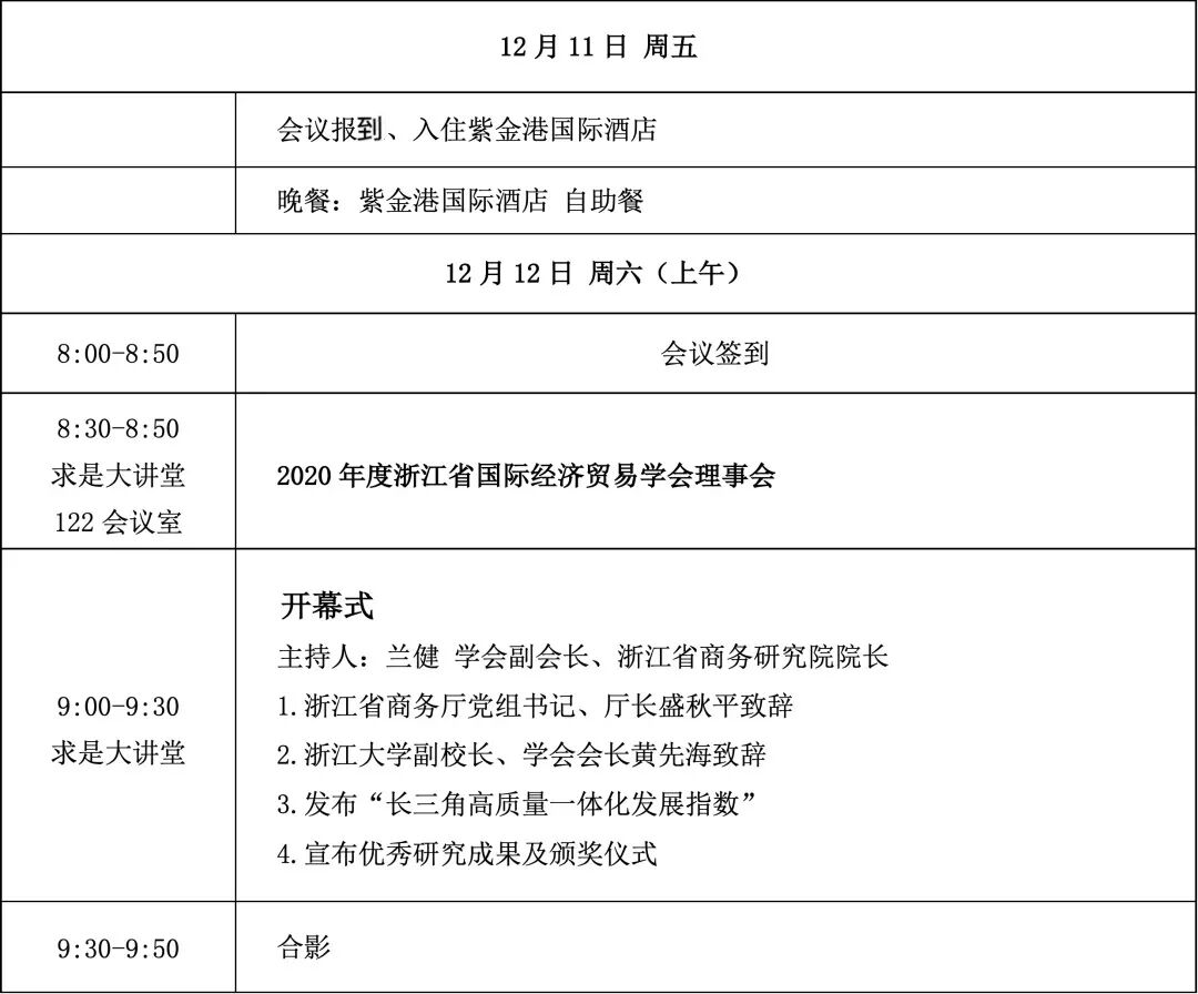 欢迎参加浙江省国际经济贸易学会第十二届年会,本次会议将于2020年12月12日在浙江大学求是大讲堂召开,主要由浙江省国际经济贸易学会、浙江大学长三角一体化发展研究中心、浙江大学经济学院承办。会议期间还将同步举办“长三角一体化与区域治理现代化”高层论坛。