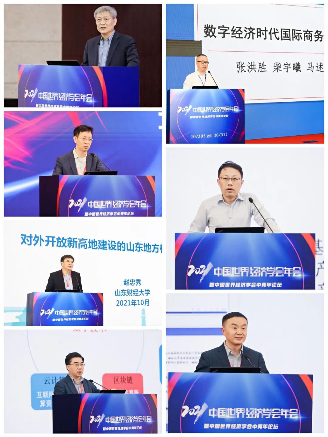 张宇燕研究员指出2021年世界经济的特点是上半年复苏,经济增长速度很快,下半年增速普遍下降,并总结了最重要的四个原因:一是发达国家的货币政策收紧;二是供应链由于疫情、灾害、大国博弈等因素导致问题频出;三是美元的全球储备货币明显下降;四是围绕气候变化的各种国家博弈已经开始。他号召参会学者共同努力,在世界经济各研究领域力争新的突破。中国社科院张宇燕研究员、北京大学余淼杰教授、山东财经大学赵忠秀教授、南开大学盛斌教授、浙江大学马述忠教授、清华大学陆毅教授、复旦大学罗长远教授等专家学者发表主旨演讲,围绕世界经济形势与展望、新发展格局下的中国经济、对外开放新高地建设的地方样本、数字贸易政策与规则、数字经济时代国际商务理论、资产泡沫与宏观经济以及跨国商业信用的贸易效应做了内容丰富的分享。东南大学徐康宁教授、中国人民大学刘青教授、武汉大学齐绍洲教授、厦门大学彭水军教授和武汉大学张彬教授进行了精彩的点评与总结。专家学者们对世界经济形势、中国经济发展、数字经济与贸易、全球化治理、全球价值链参与等经济热点问题进行了深入剖析,对中国经济在世界经济新形势、新格局下的高质量发展具有弥足重要的意义。在未来的研究中,学者专家将创新的智慧和思想的力量一同努力突破理论前沿,做出有中国特色的世界经济学。![]()