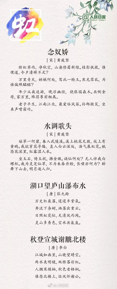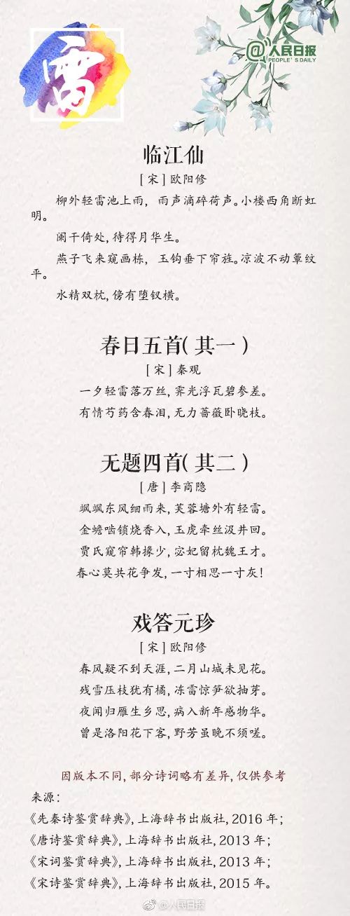 如何恰当、生动地描写天气是孩子作文写作中的一大难点,最好的方式就是看看名家是如何做的。人民日报从“风、云、雨、雪、霜、露、虹、雾、雷”的角度总结了 36 首描写天气的经典诗词,老师、家长让孩子读一读,领略一下古人笔下的气象万千吧!
