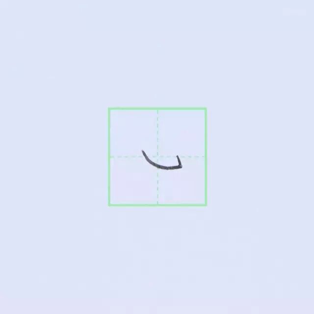 下笔稍轻,先向右下(笔画由轻到重),再圆转向右水平方向行笔,到起钩处向左上钩出,钩要出尖,但不宜过大。如图: