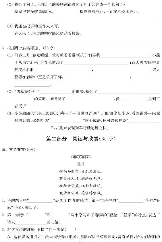 小学语文三年级下册期中测试卷