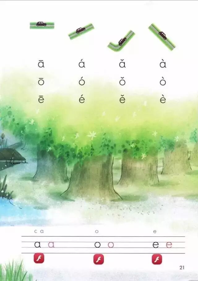 ɑ 占中格,先写左半圆,再写竖右弯,两笔写成。