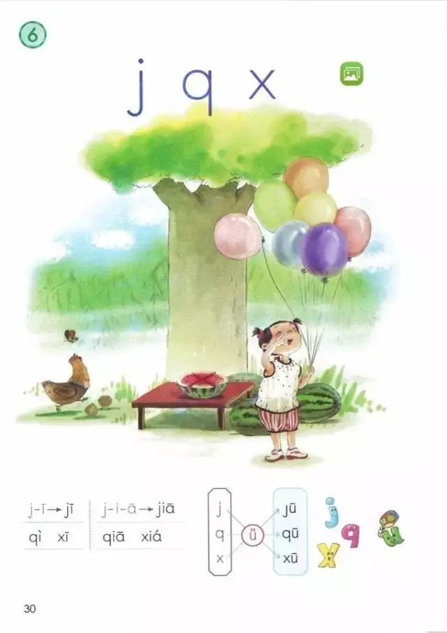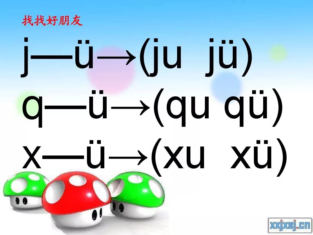 “小 ü 见到 j q x,脱帽行个礼,去掉两点还读 ü ”