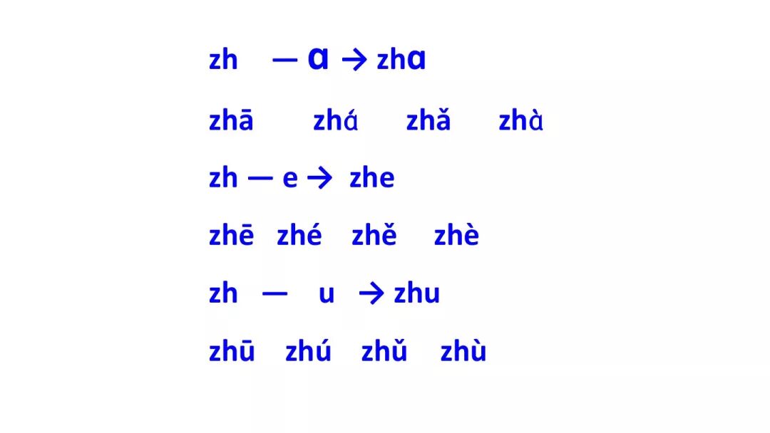 zh ch sh是由两个字母组成,两个字母要挨紧。