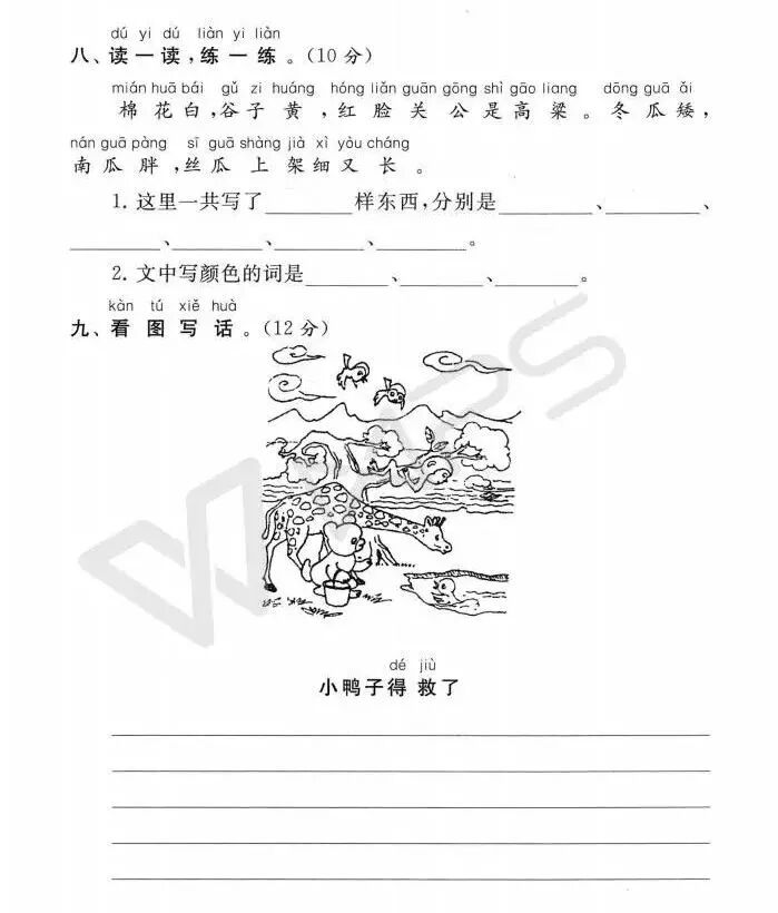 八.1.6 棉花 谷子 高粱 冬瓜 南瓜 丝瓜 2.白 黄 红