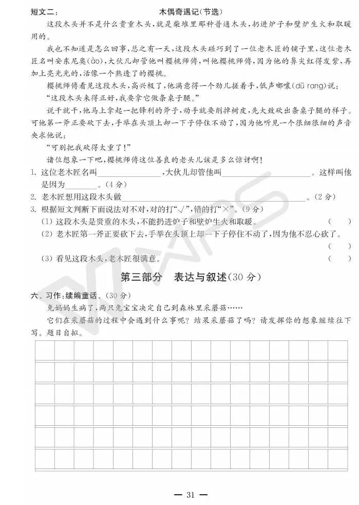 3、蝴蝶 小鹿 甲虫 有趣(答案不唯一)