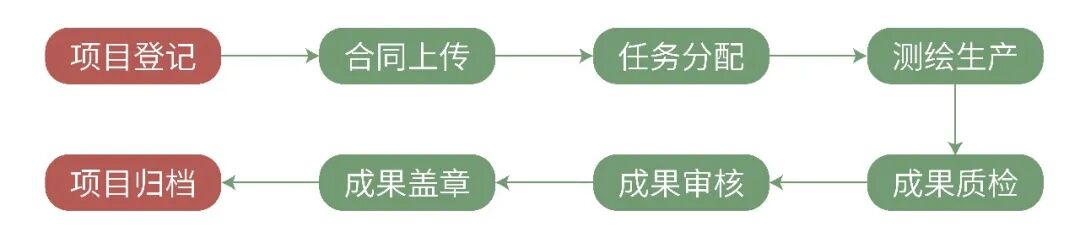 “多测合一”生产软件将原本相对离散的业务通过流程进行组织,规范业务生产管理。其向导式的功能设计,指引作业人员快速上手,高效生产。