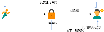 此时外卖小哥看到门禁有一个高级按钮“一键获取授权”,只要我这边同意,他会获取到一个有效期 2小时的令牌(token)正常出入。