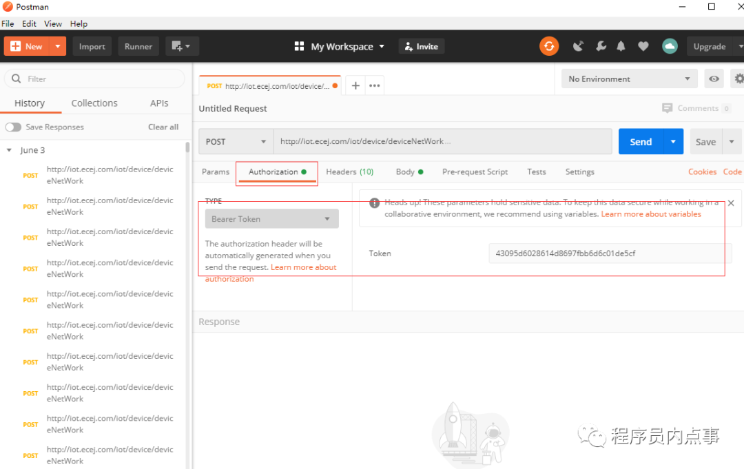 如果使用postman 模拟请求,要在Authorization -> Bearer Token 放入 token,注意:低版本postman 没有这个选项。