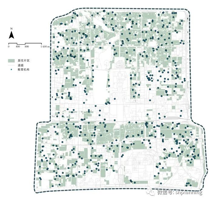老城居住用地及教育设施分布图